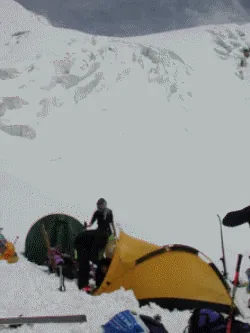 The following days saw the team ascending ice falls and crossing glaciers, all the while gaining altitude steeply.