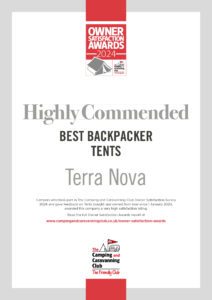 The Camping and Caravanning Club explains: “Terra Nova Equipment takes both honours in this year’s backpacking tent category, with its value brand Wild Country taking the top spot with an excellent score of 95% and Terra Nova – tents for some of the most extreme conditions – being just one percentage point behind.”