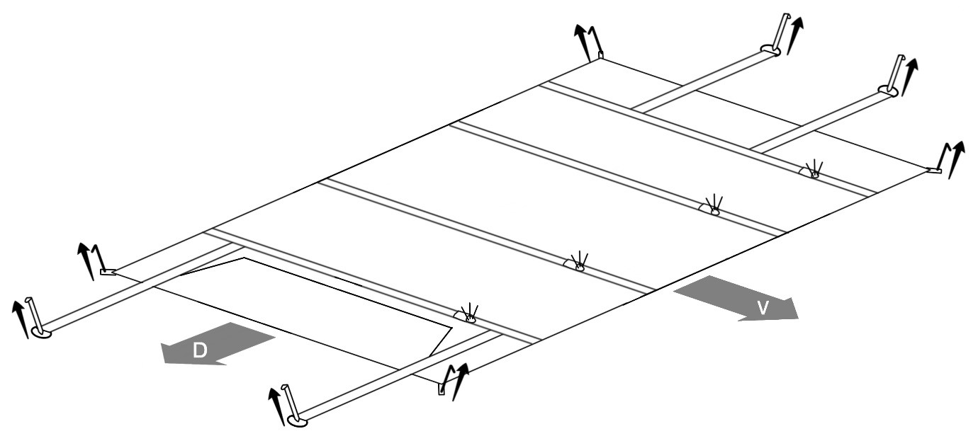 Top Tip – We would recommend using a footprint groundsheet (available separately) as extra protection from dirt and damage for the built in groundsheet. If you have one of these first lay it down on your prepared area and peg out each corner to hold it in place (keep in mind the advice on wind direction). Then un-roll the tent on top (if not simply un-roll the tent over the prepared area) ensuring the groundsheet is on the bottom and peg out each corner using the wire pegs supplied. You should ensure that the groundsheet is a rectangular shape and is taut between the pegs. You may need to reposition these pegs later.