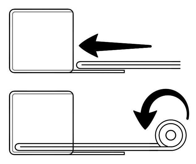 - Fold the awning so the folded seams are in line with the Airflex pole direction and so the groundsheet does not come in contact with the outer fabric of the flysheet to help keep the flysheet clean. Fold until the awning is the width of the storage bag and then place the fibreglass/ridge pole bag on top and roll it up towards the valve side of the awning to expel all of the air. Place the valve end of the awning on the small attached tarp of the storage bag and simply roll the awning into the bag. Please see the following diagrams.